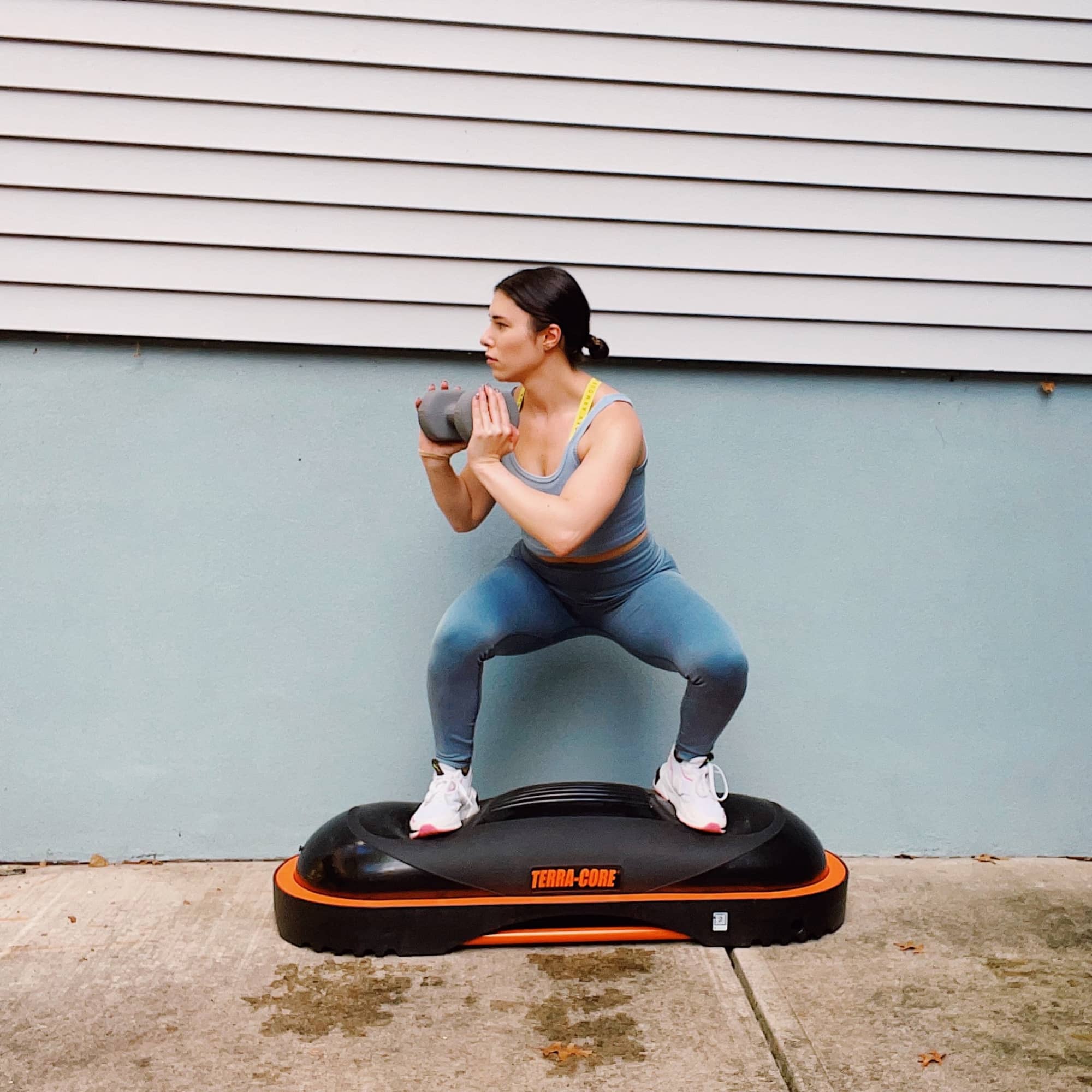 Ahead, check out footage of how I did bodyweight and weighted BOSU ball squat twists on either side of my Terra Core – because I couldn’t just balance on the flat surface from the get-go. I had to work my way up. I did not shy away from this challenge despite the difficulty, and I learned a new move in the process that I’ll keep doing in workouts to come.