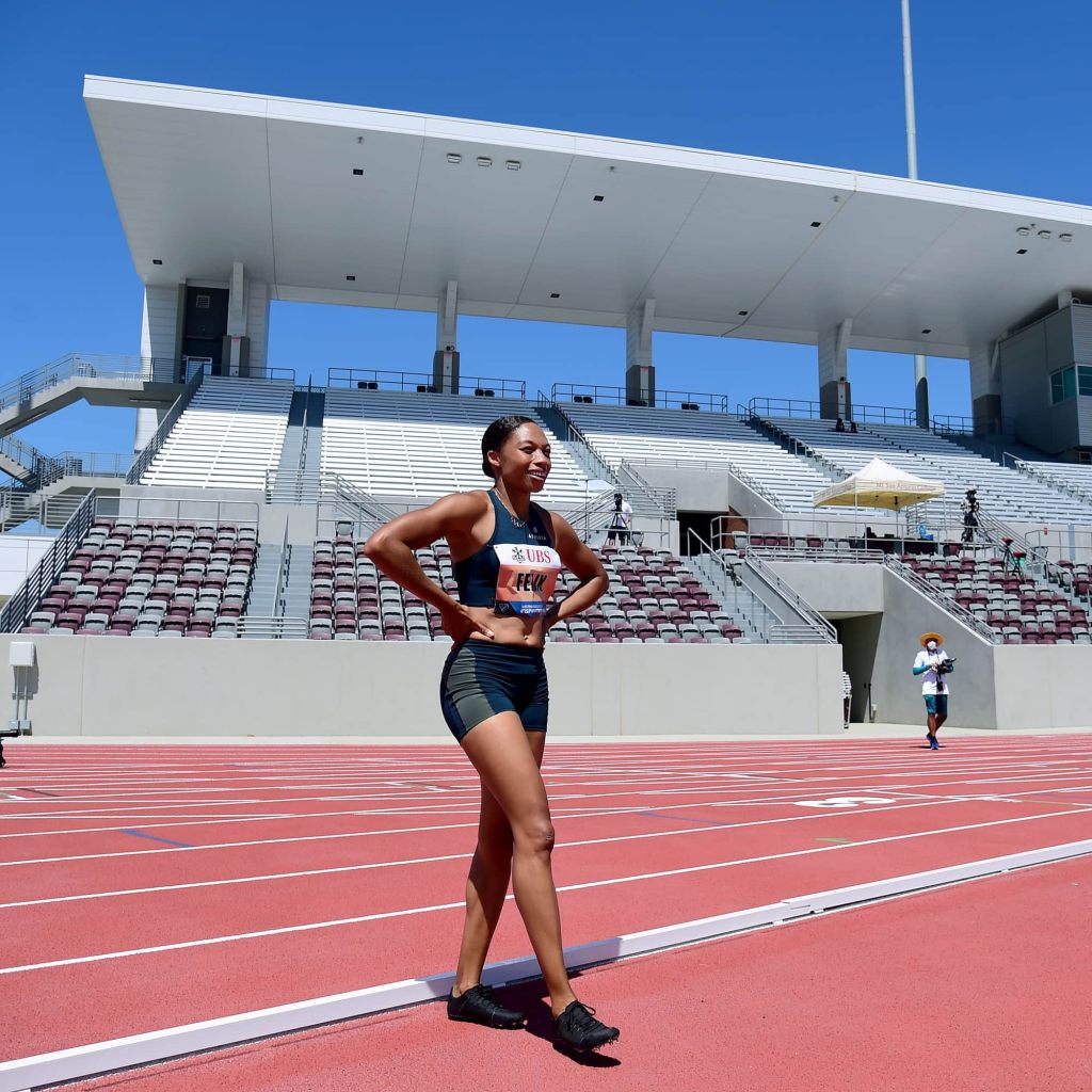 I started running track and field when I was around 7 years old, and it didn’t take long for me to set the goal of becoming an Olympic sprinter. Track was my world, and every Olympic year was like a holiday in my household. I loved the entire event, but I couldn’t wait for track and field to be on TV. I remember watching my favorite sprinters like Allyson Felix, Sanya Richards, and Veronica Campbell-Brown run with grace and dominate their events and wanting to be just like them.