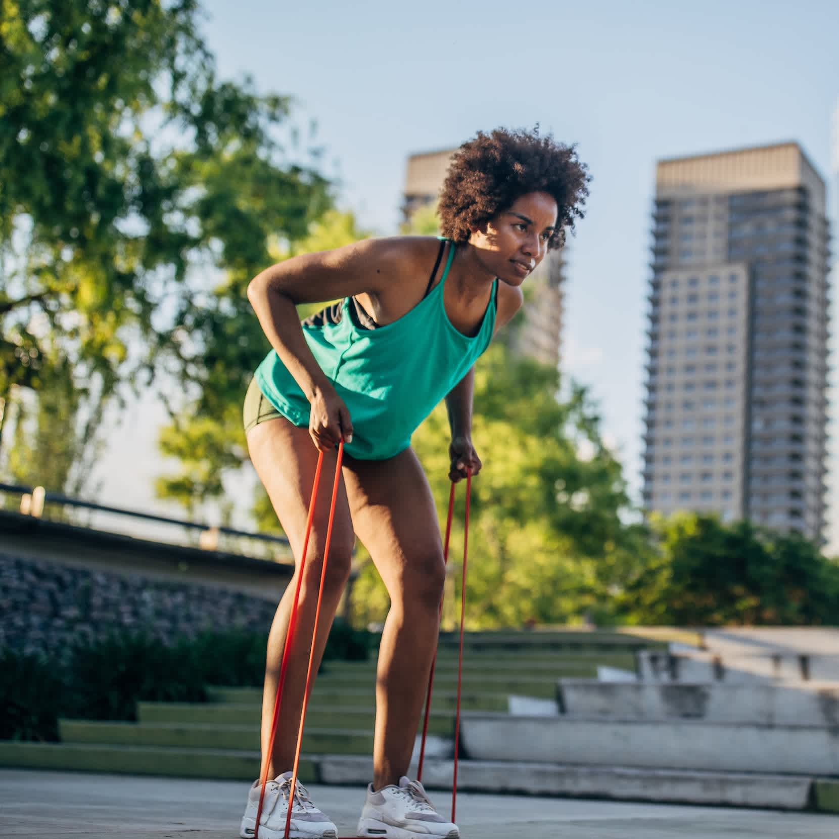 “In general, if you are new to strength training or are experiencing a significant increase in pain, resistance bands can be a better option over weights,” Jennifer Heberton, PT, DPT, OSC, a physical therapist at HSS says.