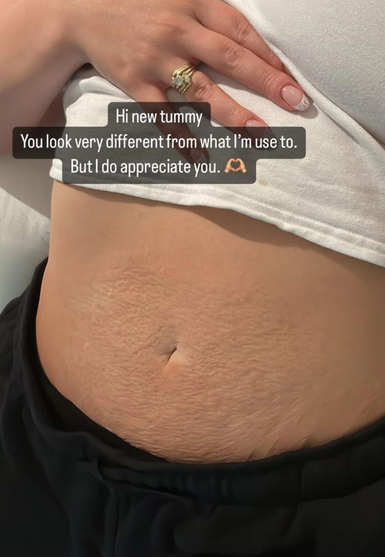 Ashley Graham is proudly showing off her postpartum body. On Nov. 2, the supermodel and mother of three shared the below unfiltered look at her “new tummy” after welcoming twins earlier this year. “Hi new tummy. You look very different from what I’m use to,” she wrote over an Instagram Stories selfie of her bare stomach on display, stretch marks and all. She concluded with a note of gratitude, adding, “But I do appreciate you” alongside a heart-hands emoji.