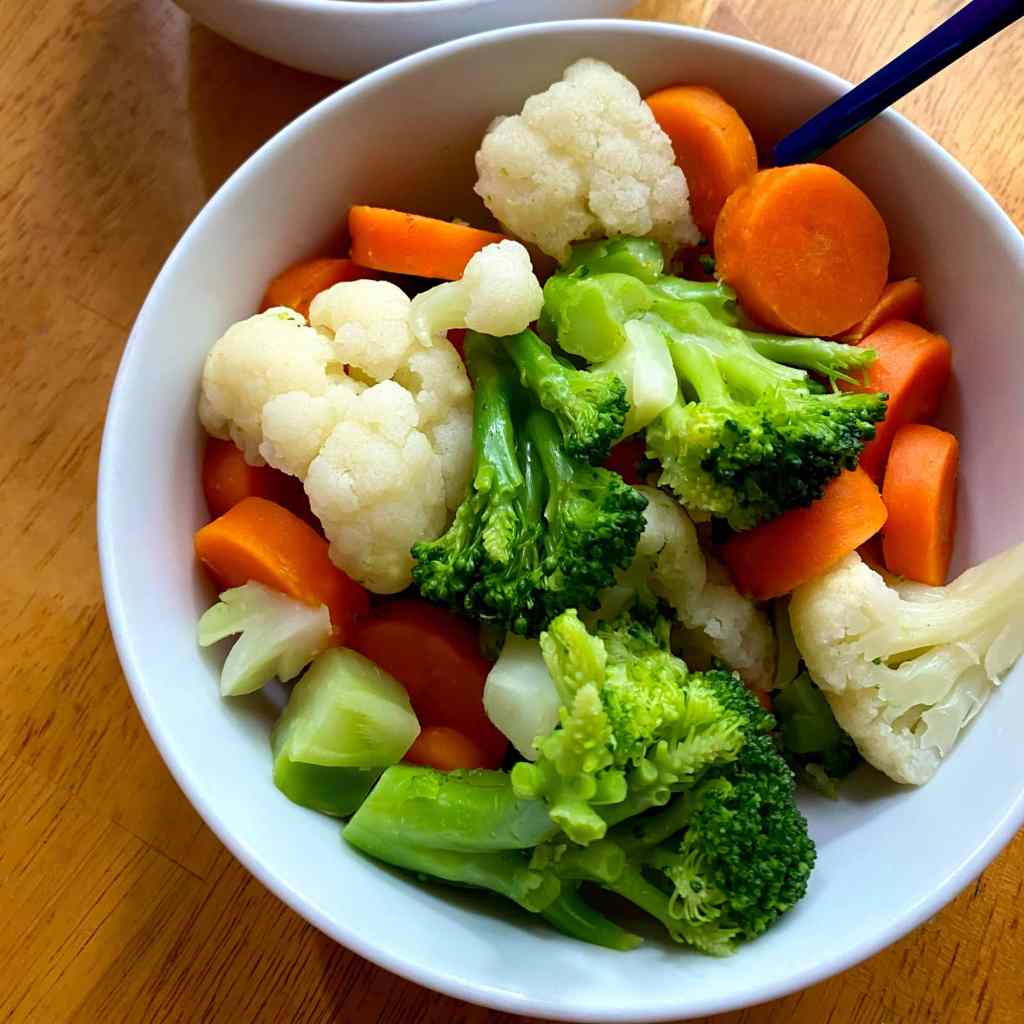 I quickly switched to eating a separate small bowl of steamed broccoli, cauliflower, or carrots (or a mix of all three), and then I’d eat my oatmeal. I started with about half a pound of veggies (half a small bag), and by the end of that first week, I was eating one pound of veggies. By the second week, I was actually looking forward to my warm bowl!