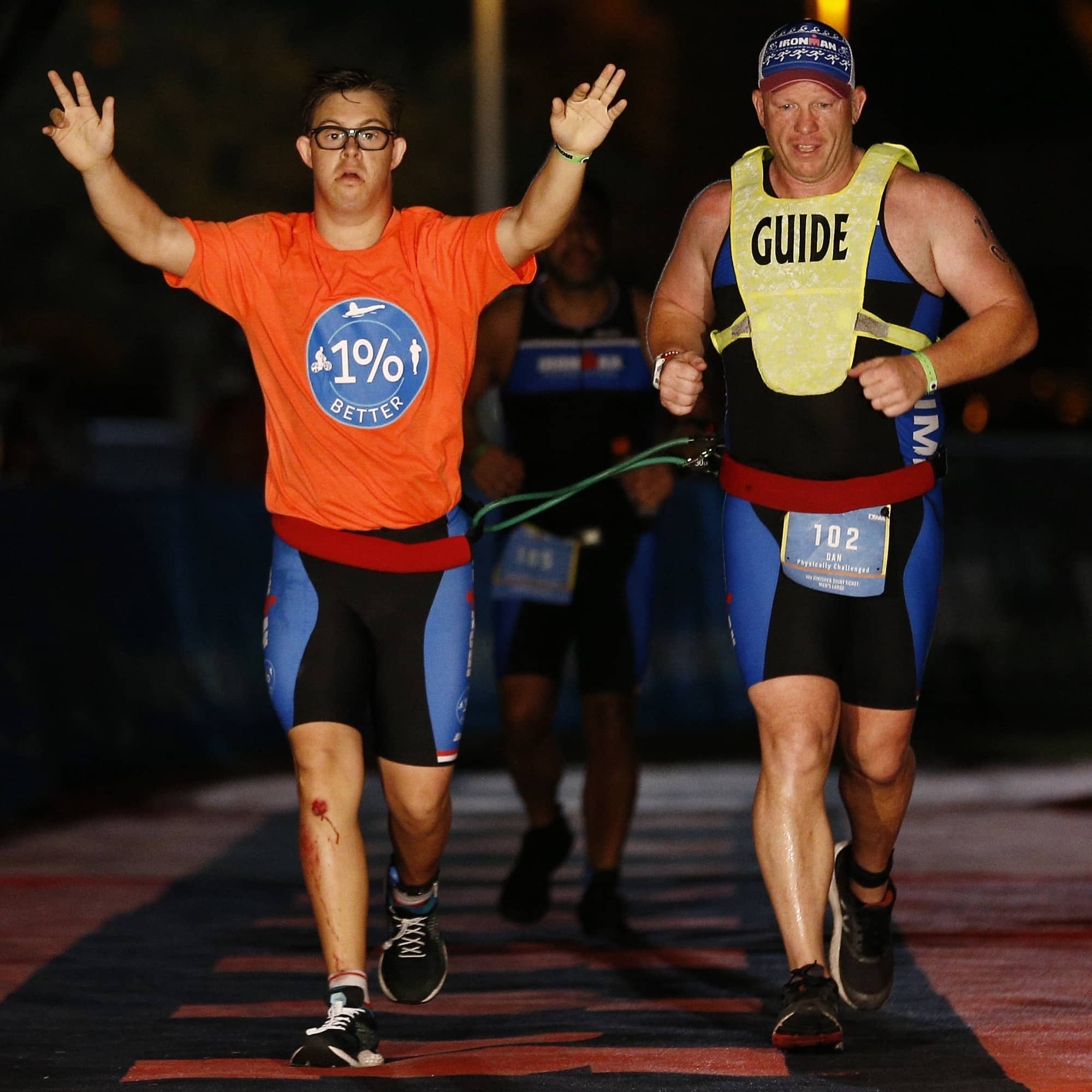 Over the past year, Nikic, from Maitland, FL, trained with Grieb, and the initial goal was a half Ironman. When that race was postponed in May due to the COVID-19 pandemic, he set his sights on the full Panama City Beach Ironman taking place on the weekend following Election Day in the US. During the race on Nov. 7, Nikic was tethered to Grieb for the swimming and running portions.