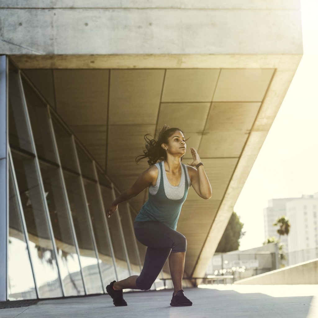 Those heavy-breathing, sweaty, heart-pumping moments in a workout are challenging, but they’re also so rewarding – there’s no denying how hard your body is working. Sprinter lunges always get me to that place.