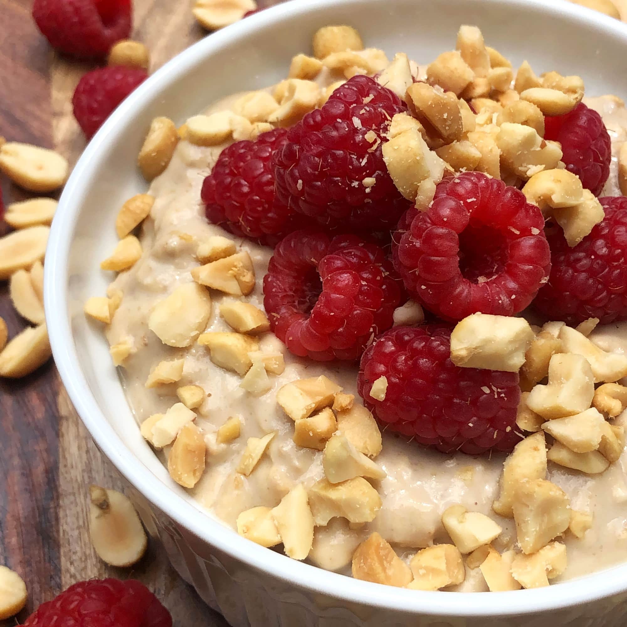 These creamy, peanut buttery oats are topped with fruit and chopped peanuts – it’s the perfect flavor combination.