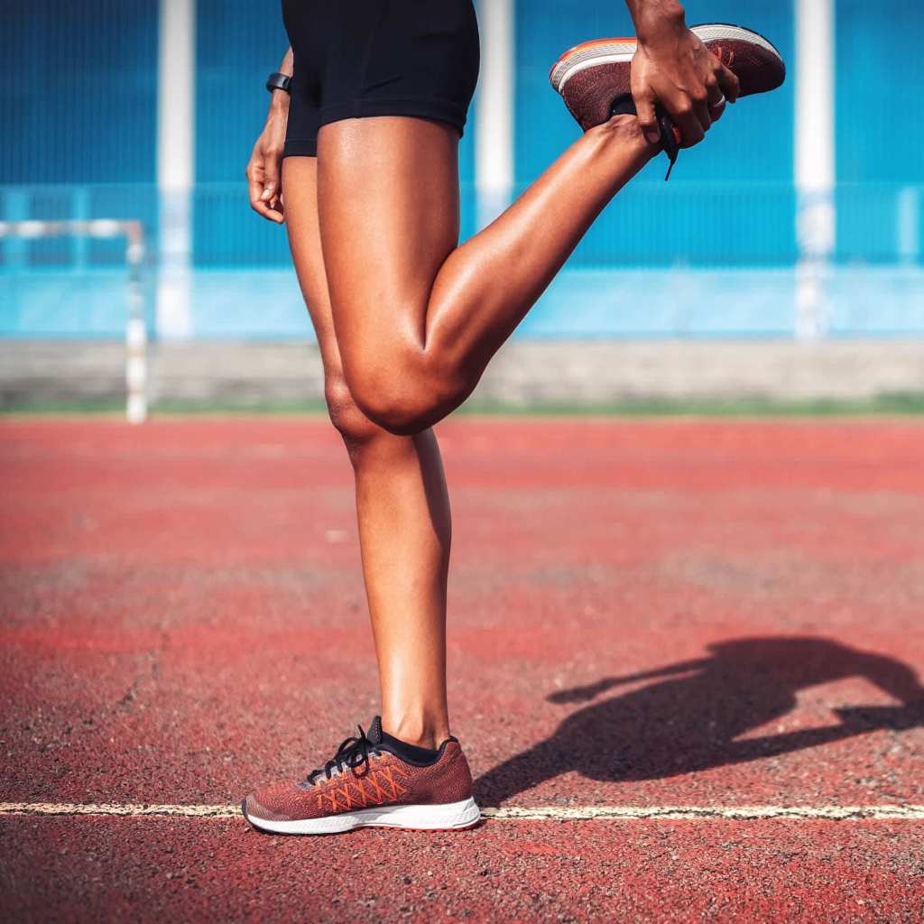 “To reduce leg soreness, I would recommend stretches such as a quad stretch – standing, kneeling, or on your side,” Amato says. Feel free to perform this stretch while lying on your stomach – using a towel to gently pull.