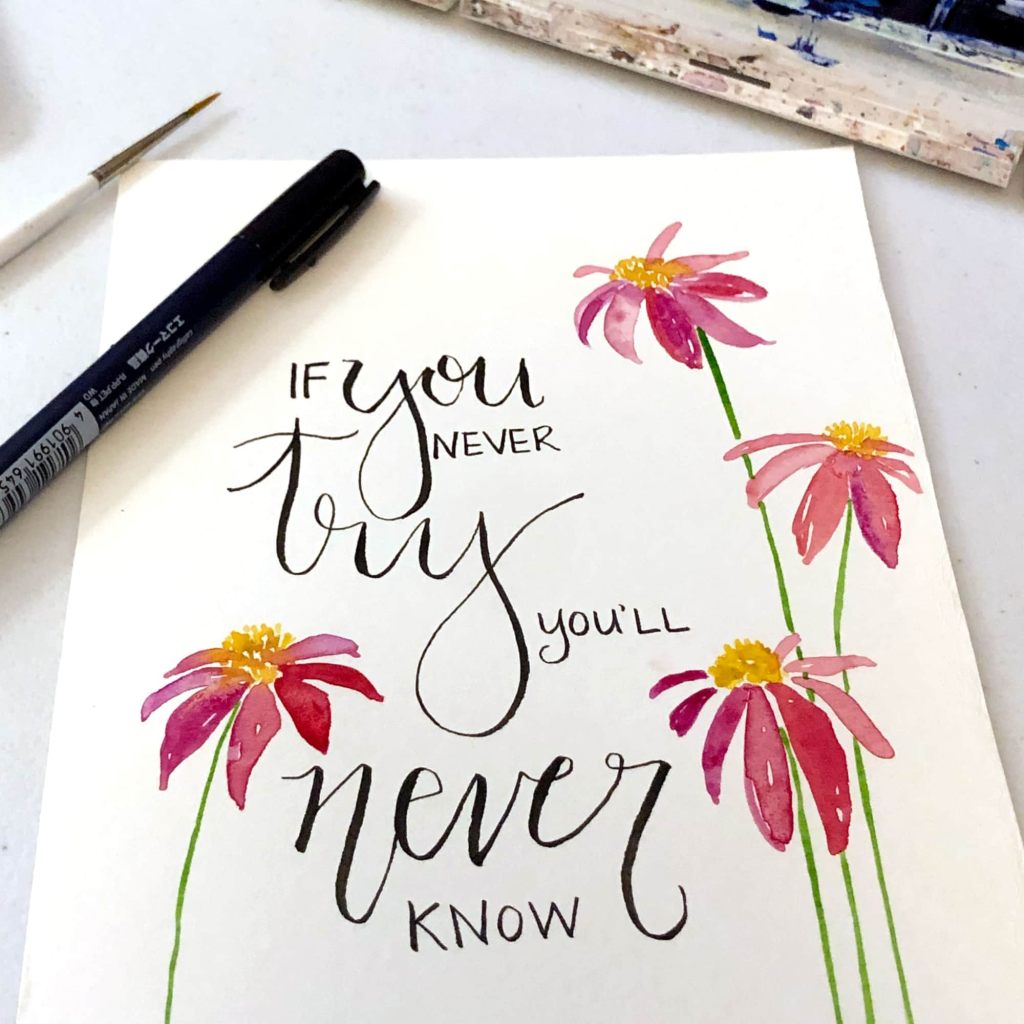 Spending months at home since this pandemic began, I have more time to tap into my creative side, and it’s been so positive for my mental health. Playing music and singing with my husband, learning to play piano with my kids, watercolor painting, doing Zentangle, sewing masks – those are just a few of the creative outlets I’ve been enjoying. And while looking on YouTube for inspiration, I discovered a new crafty hobby: mindful lettering.