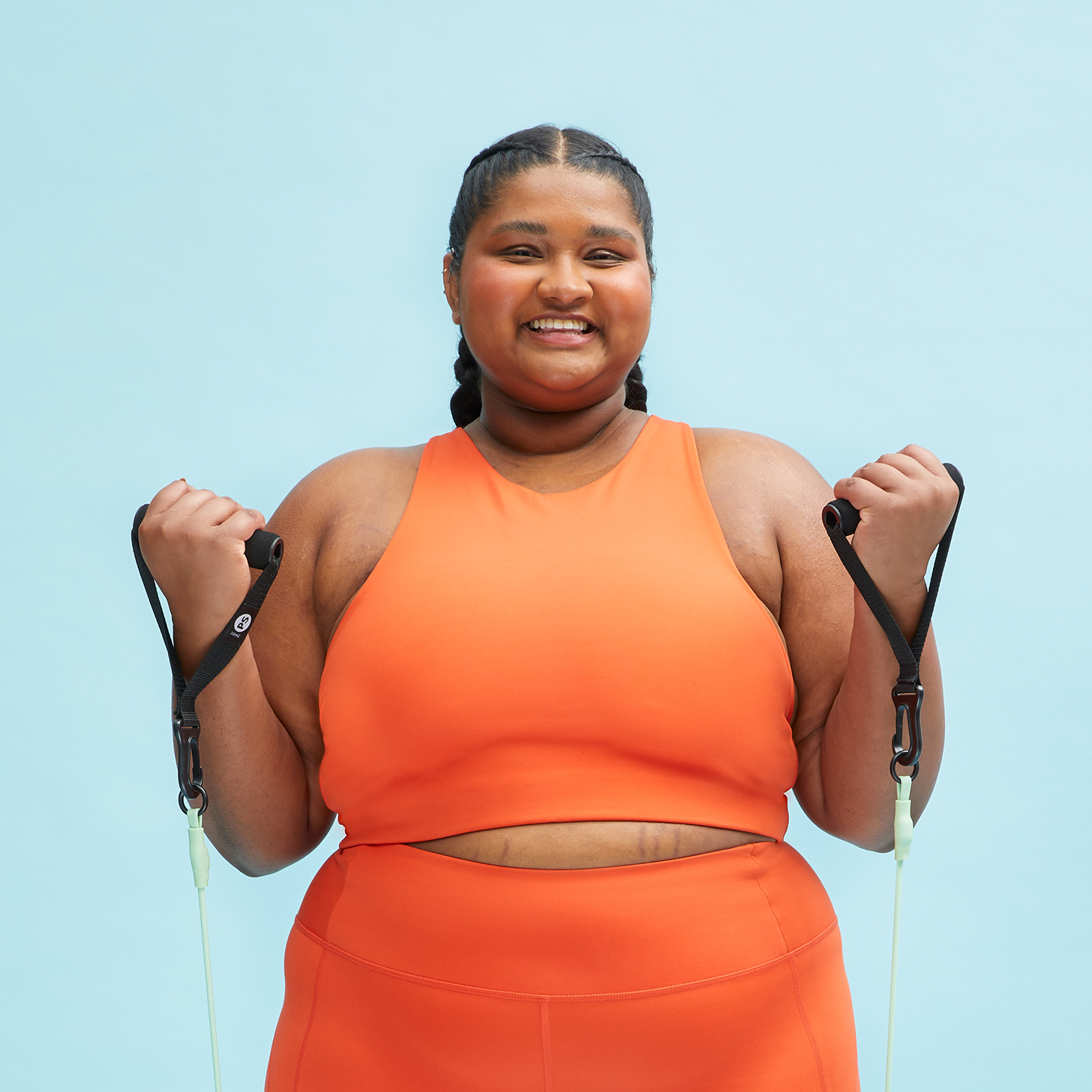 Whether you’re low on home gym space or you want to fit in a workout while traveling, resistance-band workouts are the way to go – the bands are small, lightweight, and use tension to challenge your muscles beyond using your own bodyweight. There are plenty of resistance-band exercises that work your butt and lower body using mini loop bands (aka booty bands), but did you know you can use a resistance band for tricep and bicep exercises, too? Even classic moves like bicep curls, tricep presses, and upright rows can be done using just resistance bands, with no dumbbells in sight.
