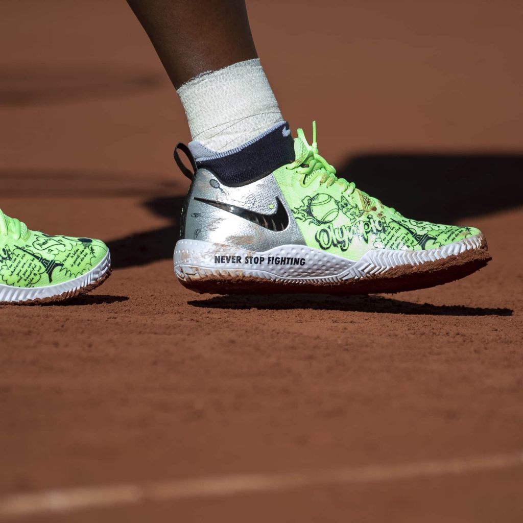 But the shoes also had a powerful statement as Williams played against Romanian player Irina-Camelia Begu. The supportive midsole on the left shoe said “Never stop fighting” in English and a similar statement in French on the right shoe: “Je ne m’arrêterai jamais,” which roughly translates to “I will never stop.”