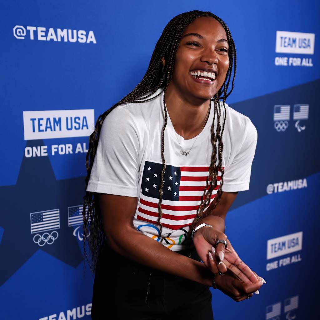 In an extremely candid conversation at a Team USA Media Summit roundtable in April, Davis-Woodhall acknowledges something not many pro athletes talk about openly: body insecurity. Building a muscular body is something the long jumper admits she’s always been afraid of, having been made self-conscious by negative comments growing up and on social media. “Even in middle school, I wore a sweatshirt every single day because the boys would be like, ‘You look like a boy with those muscles.'”