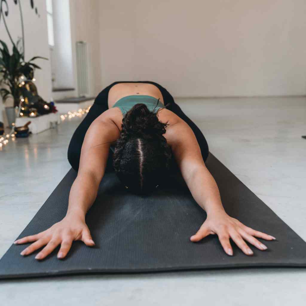 - From Child’s Pose, slide forward onto your belly. Make a pillow with your hands and rest your head on it.