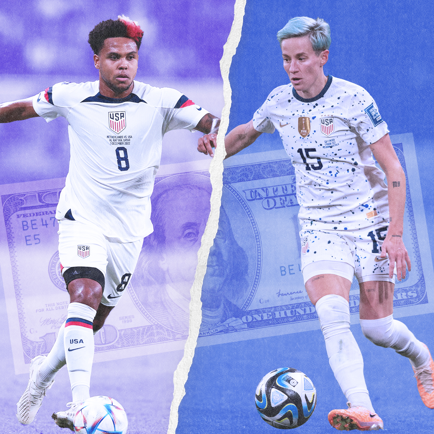 The money-sharing agreement came after the USWNT’s years-long fight for equal pay, which included a 2019 gender discrimination lawsuit and a serious campaign to raise awareness among the public. Ultimately, in May 2022, the two teams under US Soccer signed a new collective bargaining agreement (CBA) to address the issue of pay disparity between men’s and women’s teams. Under this agreement, which is valid through 2028, the two teams will operate under “identical economic terms,” meaning, for example, that they’ll be paid equally for performances, appearances, and competitions. However, despite equal pay being guaranteed within US Soccer, pay is far from equal outside the country; for that reason, the CBA also established that the prize money earned at international tournaments (such as the World Cup) would be split among the teams.