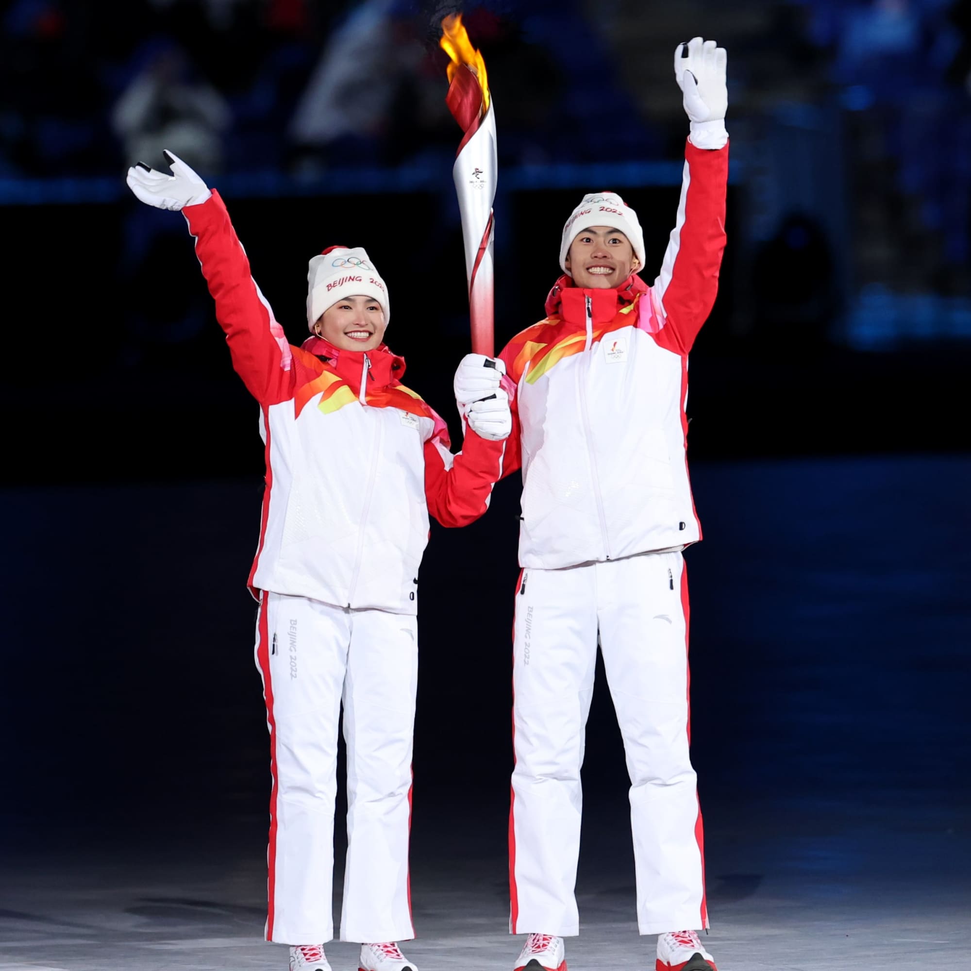 In the opening ceremony, Yilamujiang was joined by men’s Nordic combined athlete Zhao Jiawen. Together, the pair placed the Olympic flame in the middle of a large snowflake, which rose into the air in the centre of the stadium. It was a striking, symbolic moment to be sure – but one that glazed over the international turmoil at the heart of these Olympics.