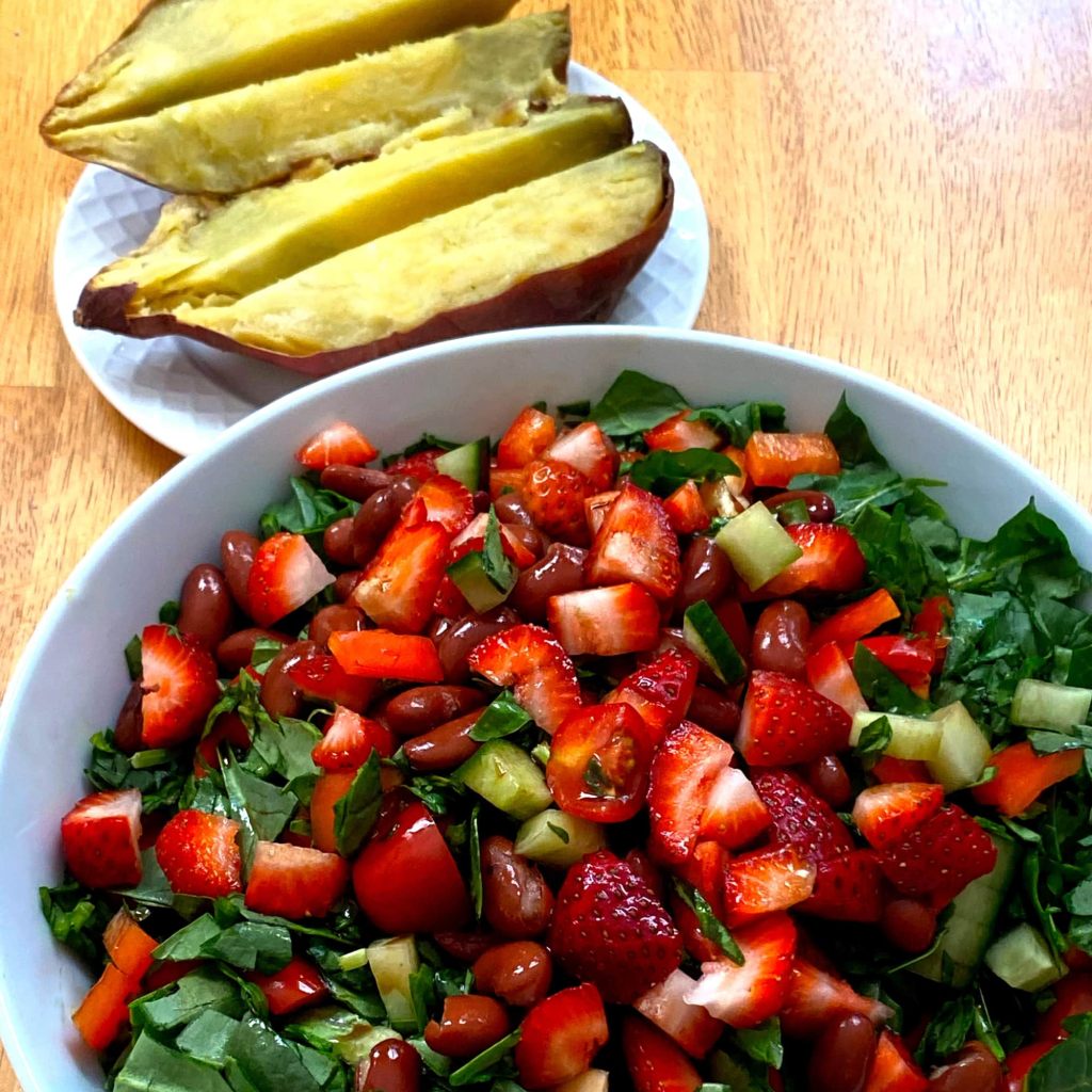 If you want to be successful on the Starch Solution, having foods ready to eat is key. I always have salads meal prepped so I can eat one as a meal each day. I also like to make big batches of whole grains like rice, quinoa, steel-cut oatmeal, and overnight oats (minus the chia seeds). I also like to keep baked sweet potatoes to add to my salads, or have cut-up veggies in the fridge on hand for roasting or steaming. It can take a couple hours to meal prep, but it’s worth it!