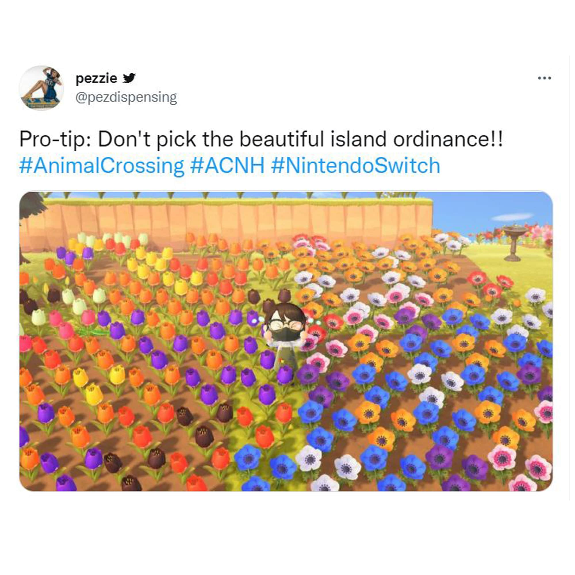 People are sharing the chaos taking place on their island and warning other players not to enact the Beautiful Island ordinance. It’s very funny, but the out-of-control flowers seem to be stressing some players out — entirely the opposite of why people play Animal Crossing.