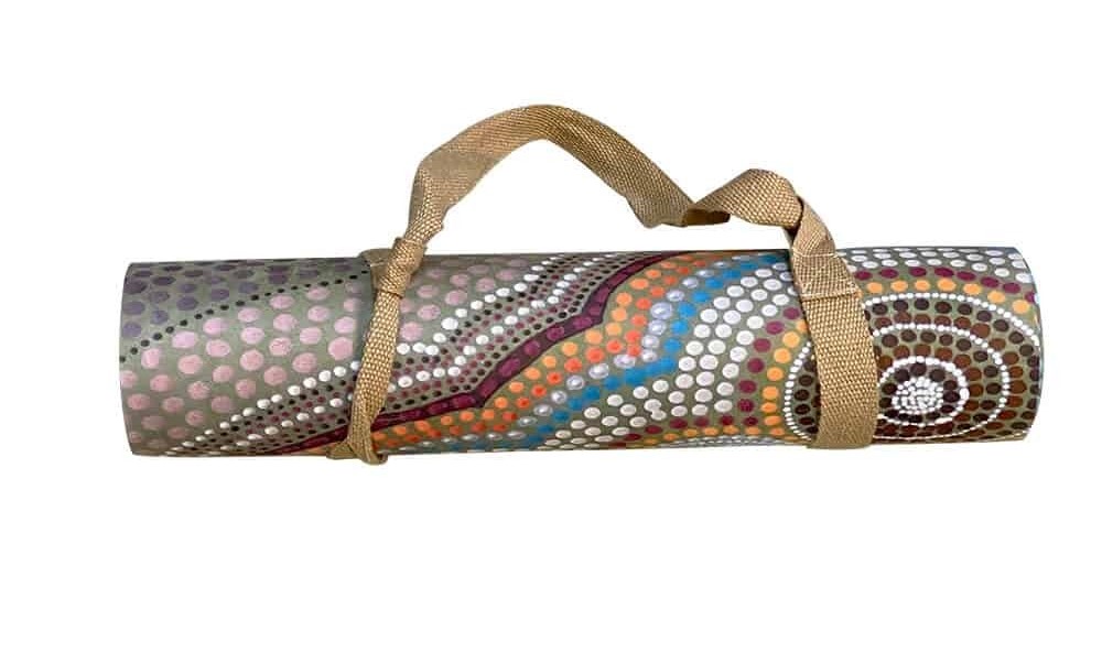 This yoga mat by artist Anna Connell from Walbanga Tribe in Yuin Country displays the garden that lies underneath the water’s surface, including its sea life and the corals by the shore. The rubber used in the mat has no silicone or toxic materials, and unlike other synthetic rubber or foam, it’s hard-wearing and, even better, won’t retain moisture. Incredibly, the micro-fibre suede top is entirely made from recycled plastic bottles.