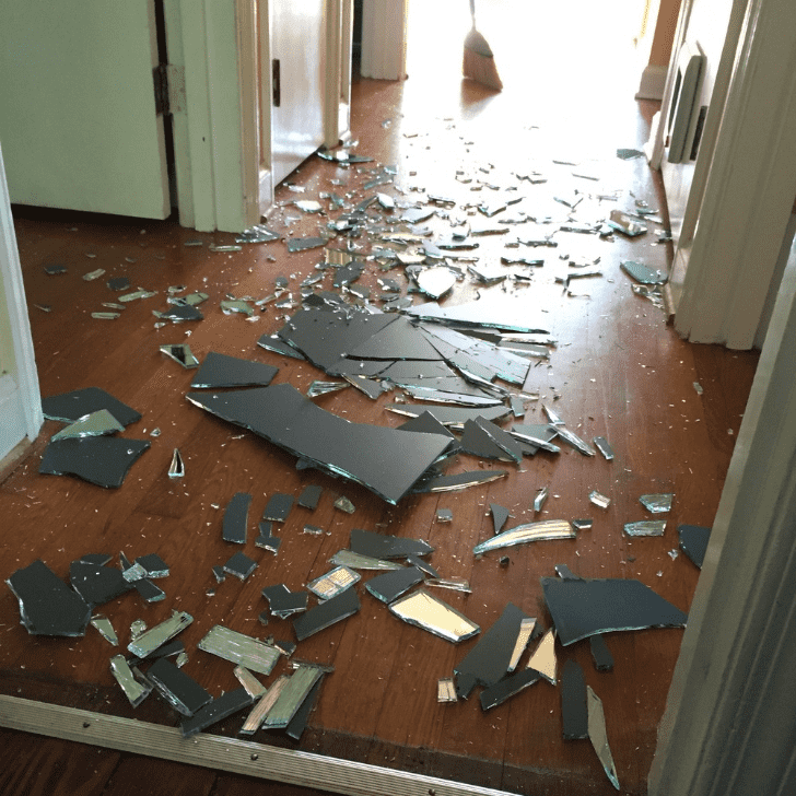 I was quiet. I surveyed the damage and took a deep breath. Put the dog outside so he wouldn’t cut his feet, put the cat in the basement for the same reason.