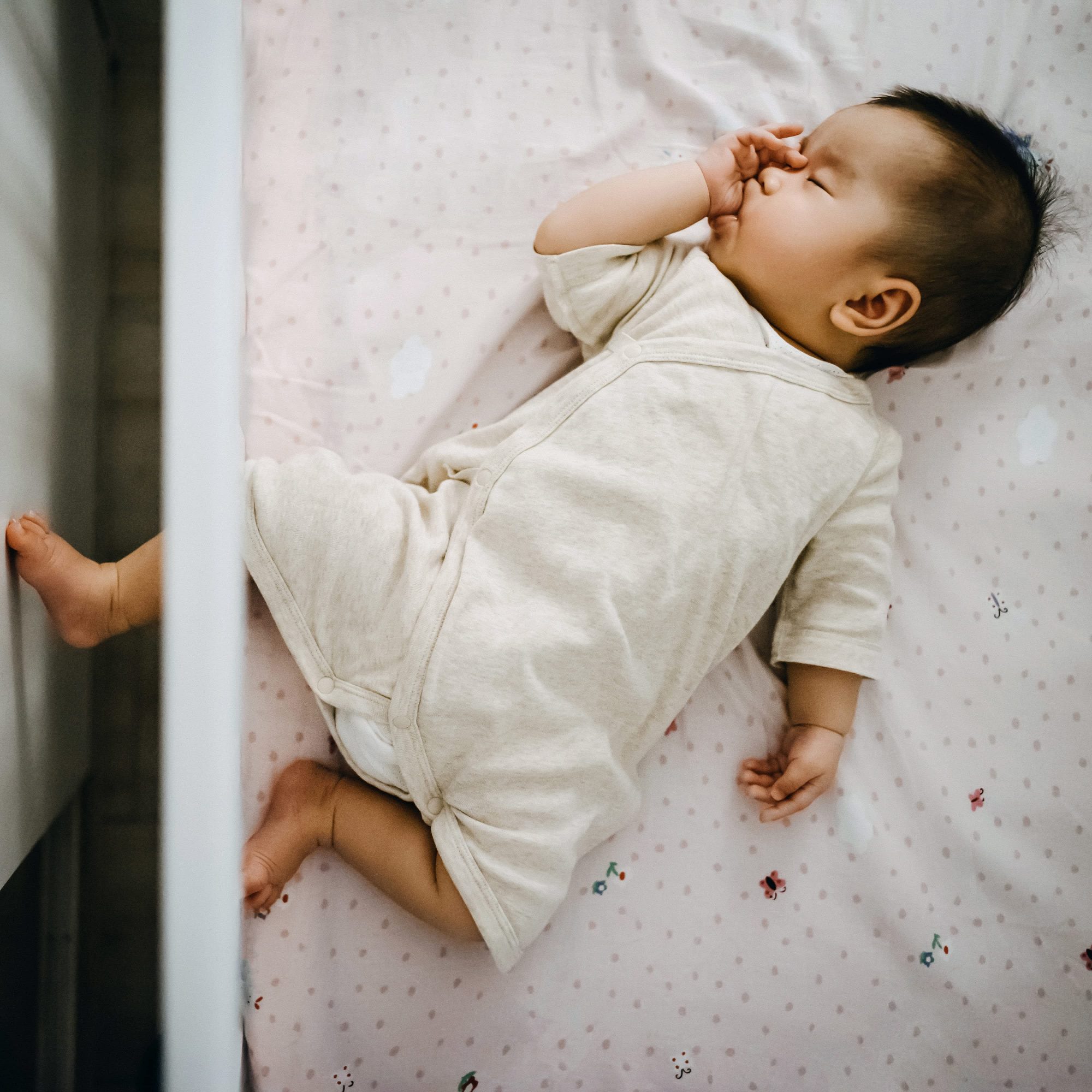 For sleep, the AAP recommends placing an infant on a “firm, flat, noninclined sleep surface,” such as a tight-fitting mattress in a safety-approved crib, covered by a fitted sheet. “[N]o other bedding or soft objects” should be on the sleep surface to reduce the risk of suffocation or wedging or entrapment,” the association adds.
