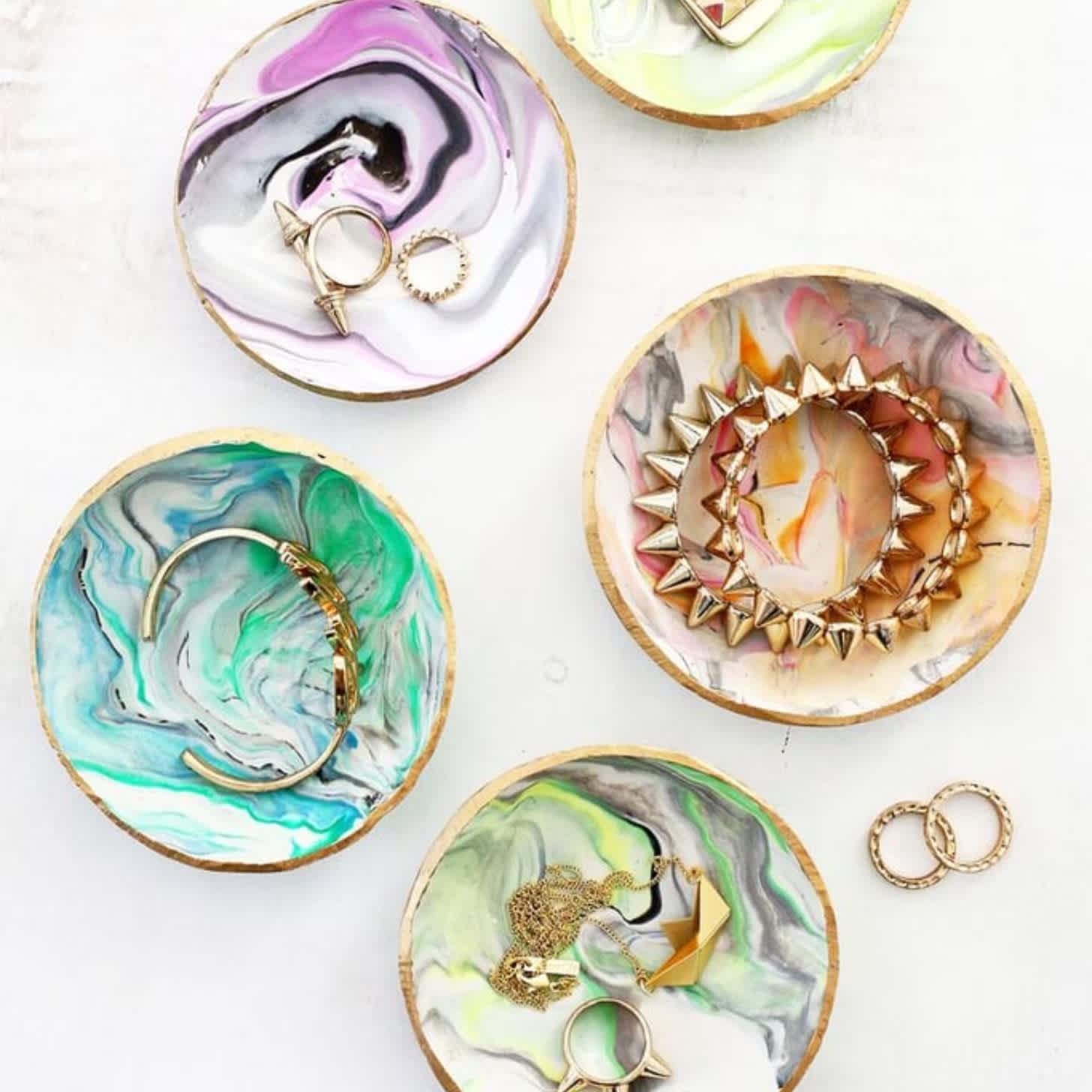These chic DIY dishes are perfect for holding jewelry, keys, or coins, and they look absolutely incredible! We suggest making a couple of these so you can give them as gifts for every celebration.