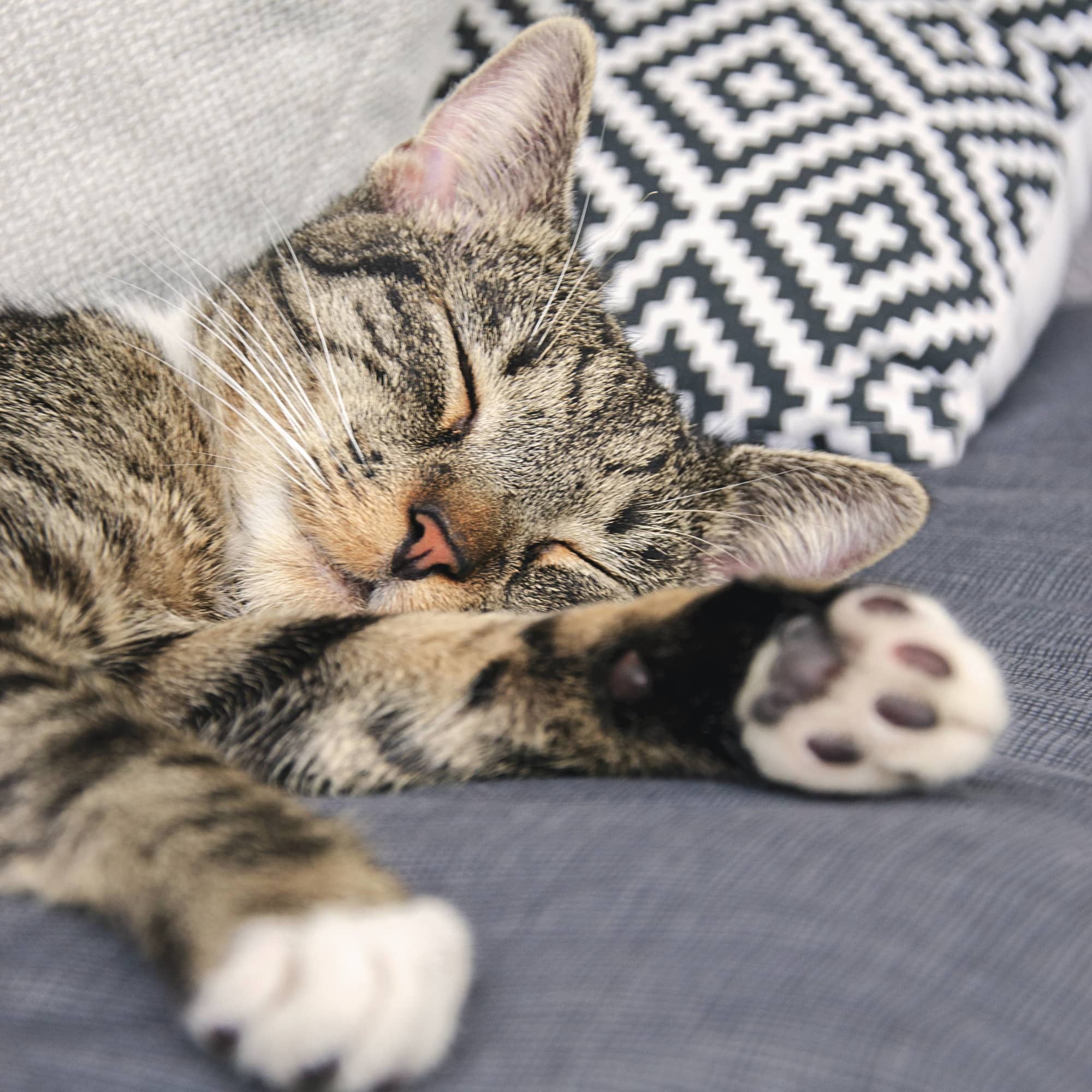 These outside factors can play a crucial role in your cat’s sleep function, so making sure they’re in tip top shape and then thinking about seasonal changes is key. Plus, an owner’s activity levels can affect cats too – Dr. Shmalberg adds that “some vets feel strongly that any increased sleeping by indoor cats is more related to a reduction in the activities of their owners, so it’s always good to keep them engaged and active, regardless of season.” If their activity level is low, consider giving your cat some outdoor time or adding a few cat toys to the mix to keep them energized.