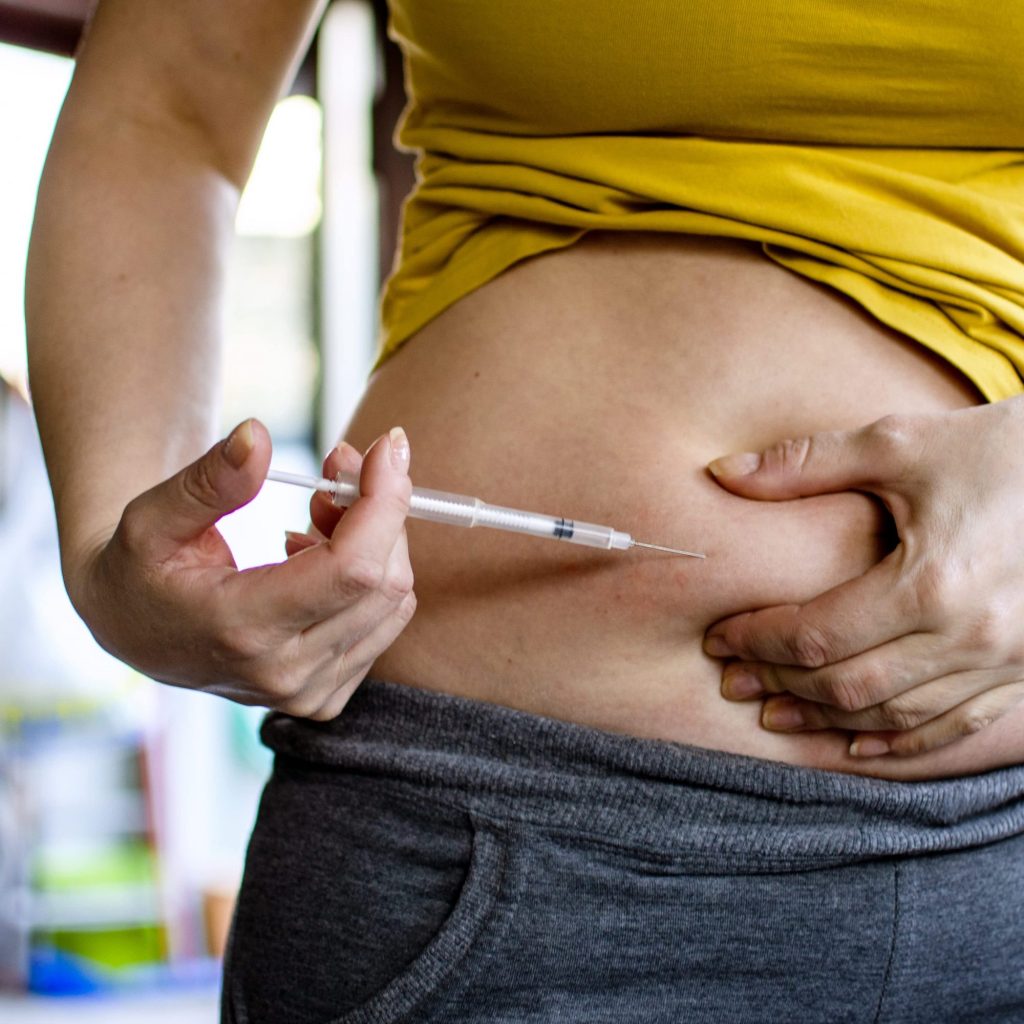Next, before I would inject the needle into my skin, I would place it right where I wanted it to go, without puncturing my skin. I would hold the needle perpendicular to my abdomen just so I could not see the tip. I found that by not seeing the pointy part of the needle, it made the whole process seem less intimidating.