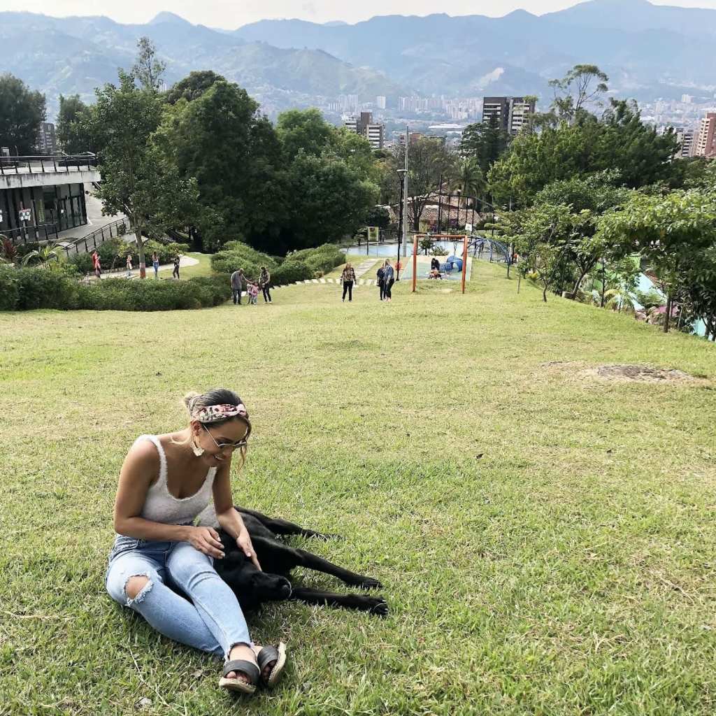 The day before his appointment, we had a mini photo shoot at our favorite park. He walked the whole way without protest, stopping only to sniff every leaf, flower, and enticing smell that traveled on Medellín’s shifting winds. He didn’t have the strength to get up on the bench at the park like he used to, but it didn’t matter. I knelt down next to him and took in every last fold of his skin as our photographer friend snapped away. Sam sat peacefully for every hug, and in between receiving my giant, enveloping squeezes, he happily took in the sights, smells, and sounds of his final home.