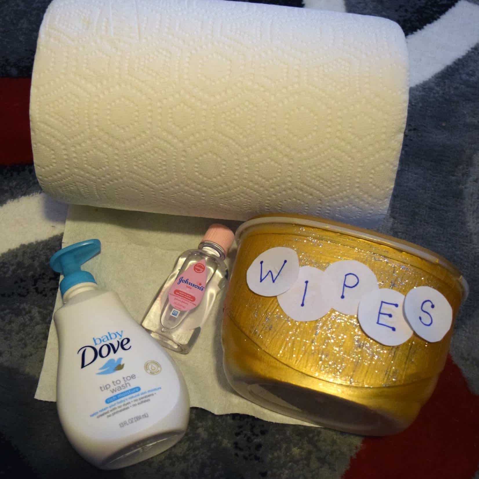 Once your baby is over 3 months, though, you can use baby wipes, including ones you’ve made at home. Dr. Siddiqui mentioned that it’s important to make sure that the substances (in this case, oil and soap) won’t react with your baby’s skin. So make sure you either do a small test beforehand or use a soap you’ve already been using. Dr. Siddiqui also recommended not using anything heavily scented and suggested running your plan past your pediatrician beforehand, just in case!