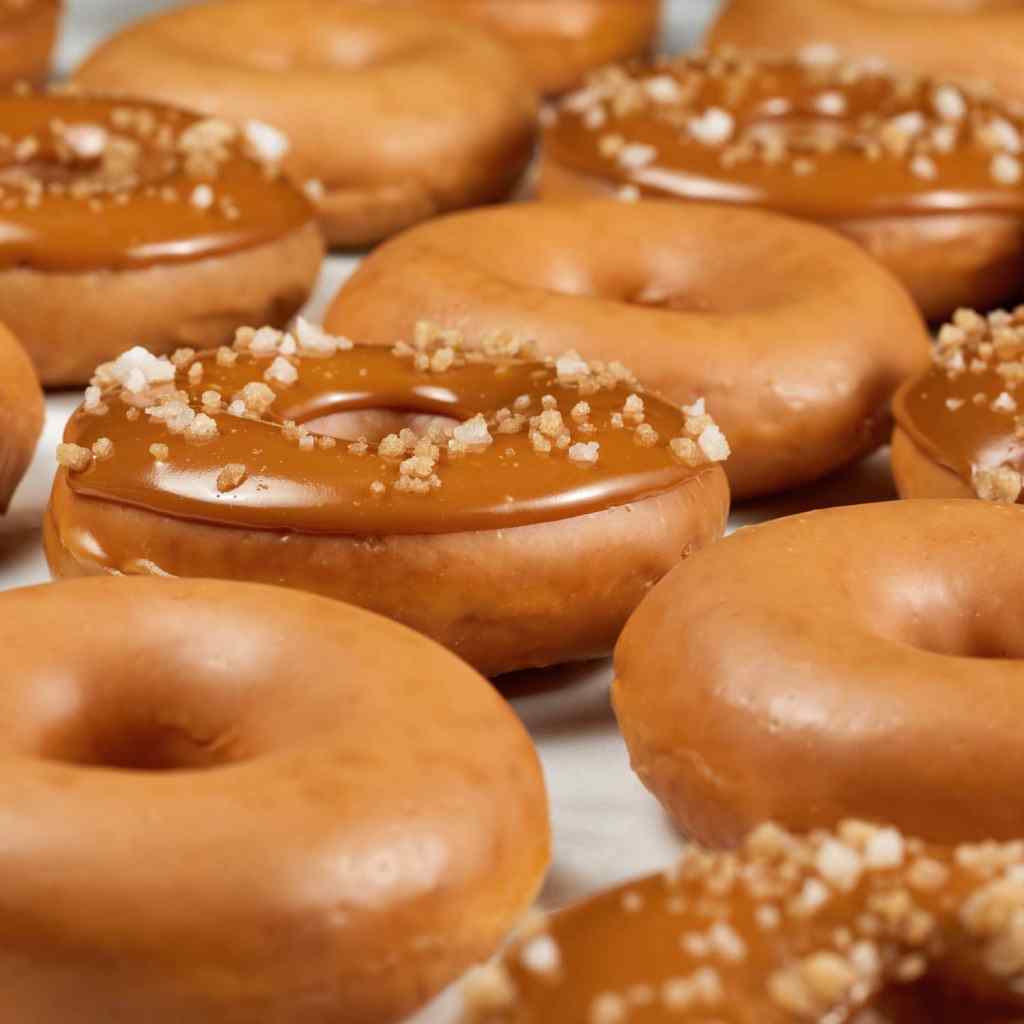 Move over, maple bars and pumpkin spice doughnuts, because Krispy Kreme just released two new caramel doughnuts. I’ll take a baker’s dozen, please. The doughnut chain is selling a new Caramel Glazed Doughnut dipped in caramel icing and a Salted Double Caramel Crunch Doughnut topped with a sprinkle of salted caramel crunch, which is basically 8-year-old me’s dessert daydream come true. (That and Duncan Hines’s enormous Mega cookie.) The sticky treats are only available for a limited time between Nov. 9 and Nov. 22, so try one next time your sweet tooth is speaking to you (don’t forget the napkins!) and take a closer look at the new caramel-glazed doughnuts here.
