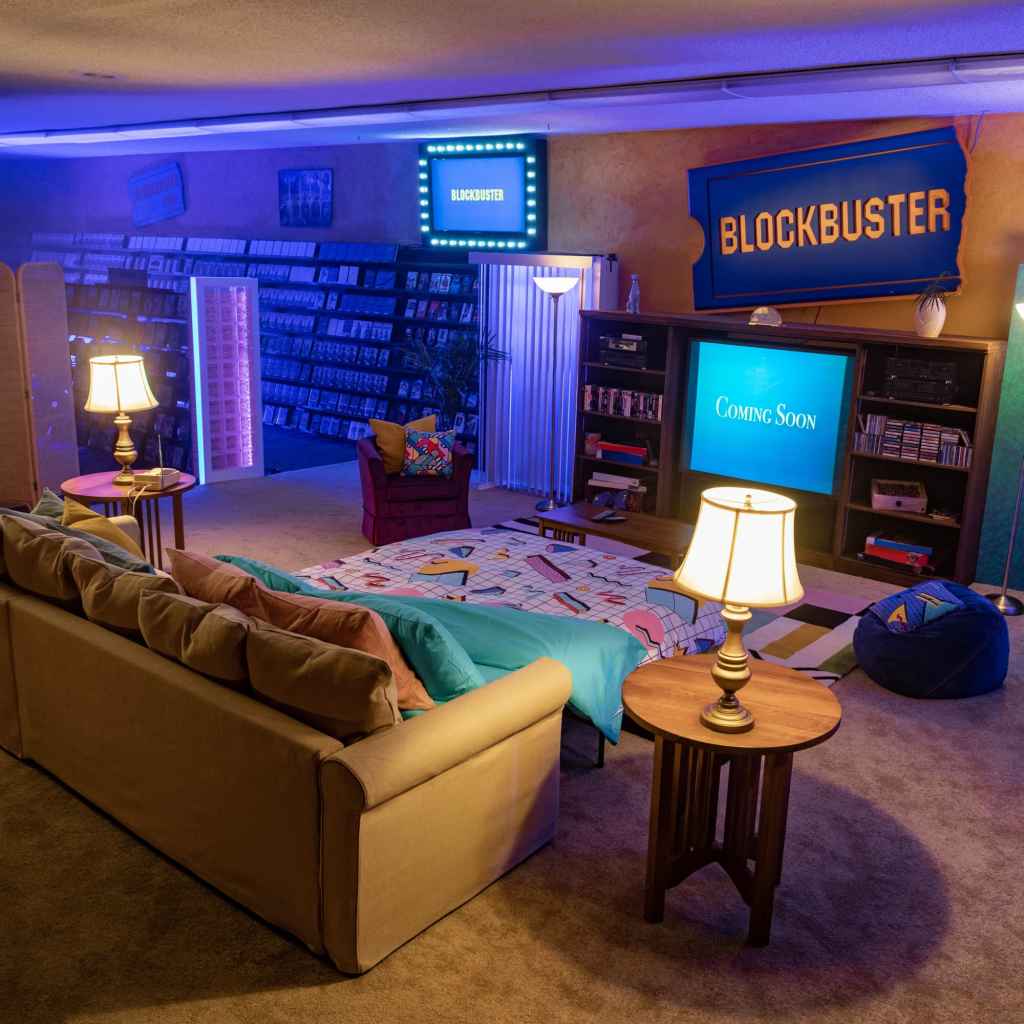 Dust off that blue and yellow membership card, because the last remaining Blockbuster on the planet has been transformed into an Airbnb, and it’s ready to host your next sleepover. Located in Bend, OR, the trusty outpost of the bygone video rental chain has cleared a section of its well-perused shelves to set up everything you need for the perfect ’90s-themed stay: a pullout couch and air mattress, a giant TV and VCR (Just remember to be kind and rewind!), bean bags and pillows for kickin’ back, a corded phone (prank calls, anyone?), and yes, plenty of candy and snacks like popcorn, Gobstoppers, and Laffy Taffy.
