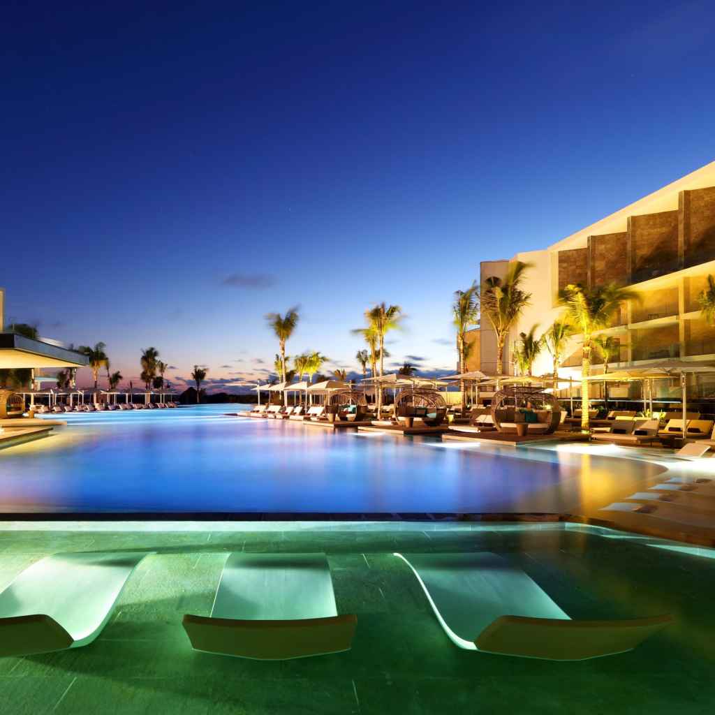 Located just outside of the center of Cancún, the adults-only TRS Coral Hotel sits toward the Northern edge of the Yucatan Peninsula, right along an expanse of serene, white-sand beaches and crystal-clear ocean water. Every inch of the hotel itself boasts a contemporary design, balancing elevated modern elements, like stunning marble and tufted furniture, with lush greenery. Through the centre of the property runs a path lined with towering palm trees, leading to a huge pool and lounge chairs that overlook the beach.