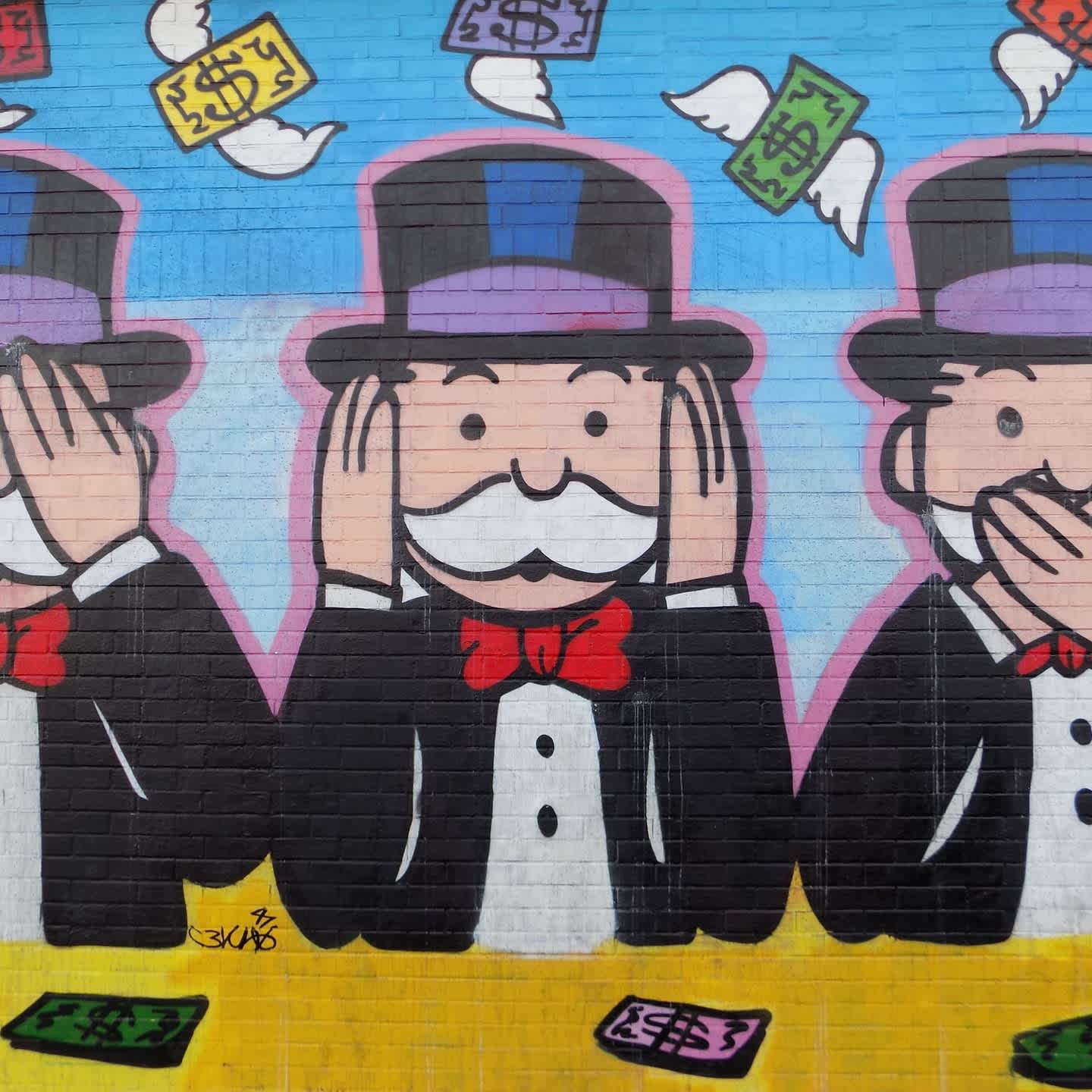 - Monopoly Man: There are a few things that come to mind when picturing the monopoly man: his mustache, his tuxedo, and the infamous monocle he wears around his eye. Just kidding! The monopoly man never had a monocle (apparently), and the world has never been the same.