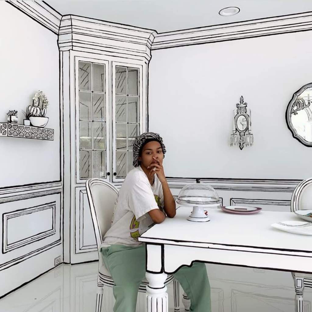 In the most recent edition of Celebrity Homes That Leave Us Spellbound™, Teyana Taylor gave us all a sneak peek inside her home, and stepping into her dining room for dinner must feel like a scene out of a comic book every time. Straight out of A-ha’s “Take On Me” music video, the room – which appeared in Teyana’s Instagram Stories on Nov. 24 – includes a dining table, chairs, and a floor-to-ceiling china cabinet complete with reflective window-pane lines sketched across on the glass.