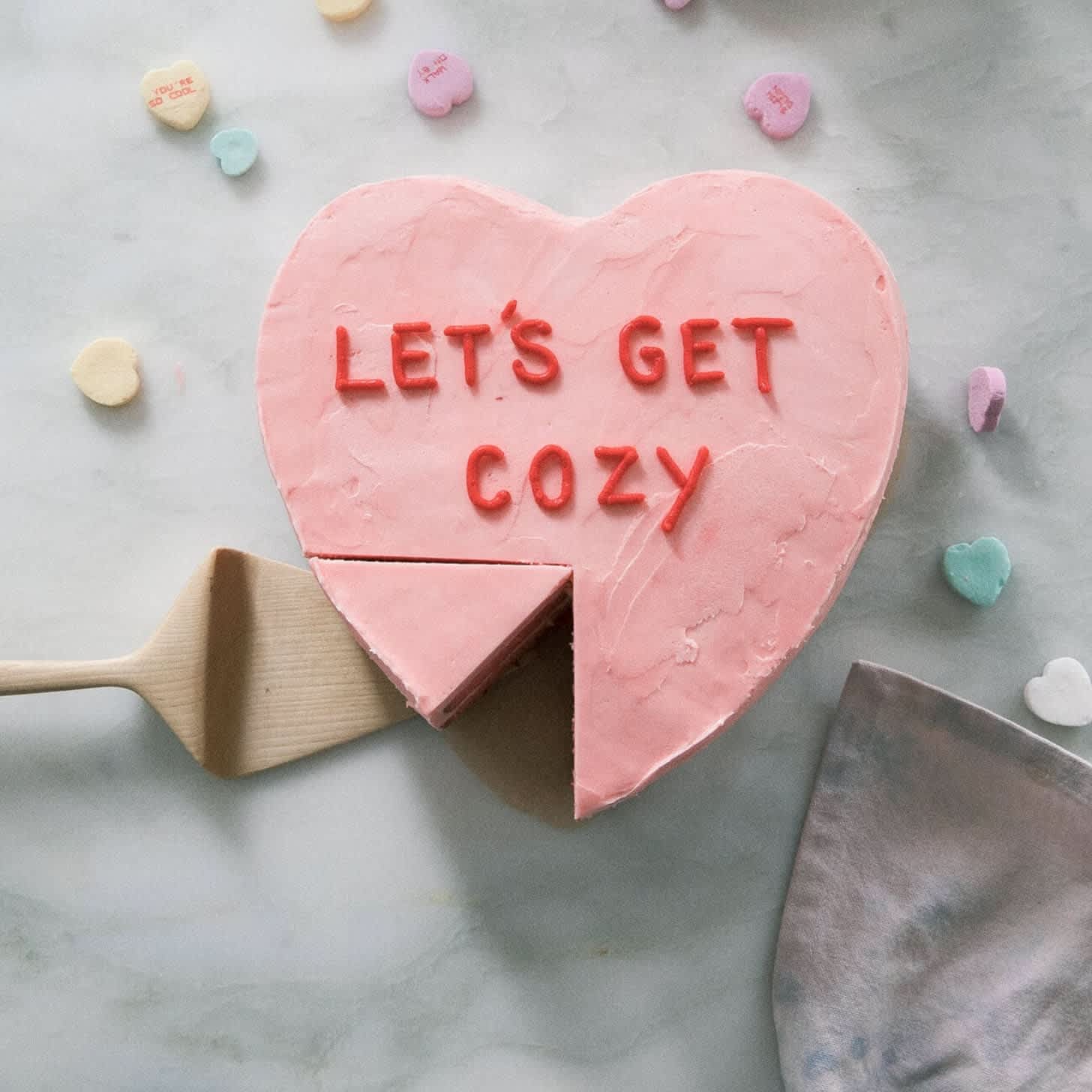 Made with love, this sweet cake will blow away your SO. It’s easy to make and pairs well with strawberries, so get cookin’!