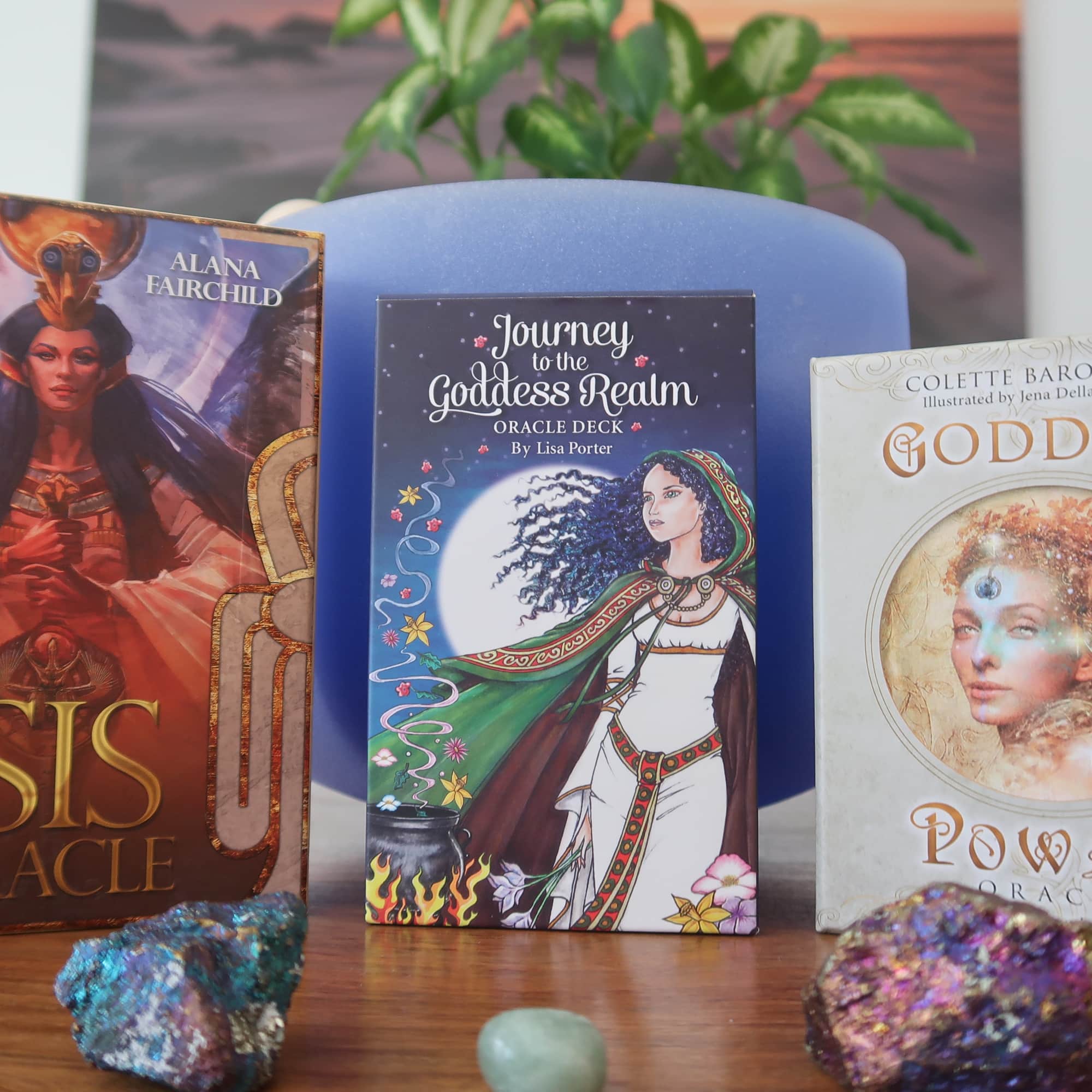 You might see the inclusion of Santería, a pantheistic religion, and its orishas in some goddess oracles. Technically, orishas (the polytheistic entities in Santería) aren’t gods or goddesses; they can be understood as entities or possibly even deities. Goddess oracles range in size from 22 to 52 cards and have beautiful artwork created by the author and illustrator. They will always center on feminine energy, because that’s what a goddess is – it’s the highest form of our feminine expression. It’s helpful to get familiar with polytheistic cultures to better understand the different origins of goddesses.